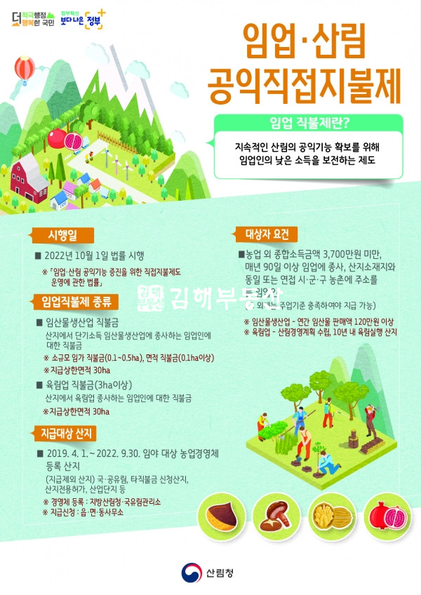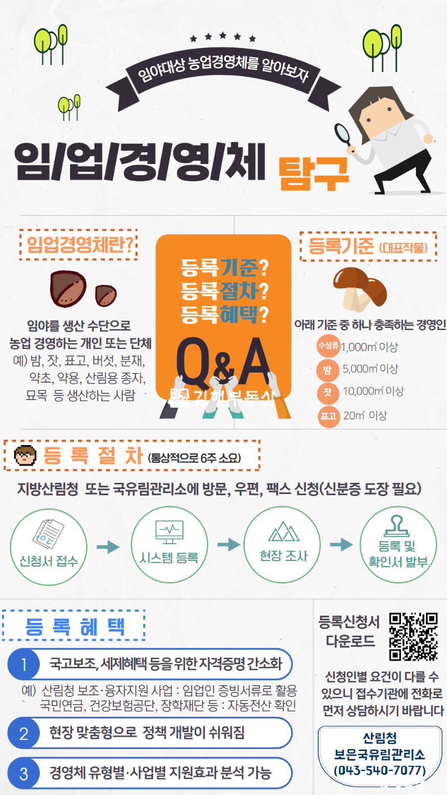 임야를 생산수단으로 하는 농업인, 농업법인, 임야물 생산/채취업 및 임업용 종자/묘목재배업 산림청 정부 지원금 받으며 농업경영 하실분 추천드립니다.